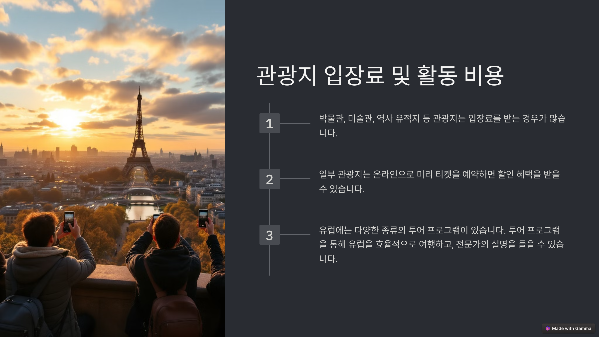 유럽에는 다양한 명소와 유적지가 있어요. 하지만 대부분의 유명 관광지는 입장료가 꽤 비싼 편이에요. 예를 들어, 프랑스 루브르 박물관 입장료는 €17, 이탈리아 콜로세움은 €16, 영국 런던아이 관람은 €30 이상이에요.