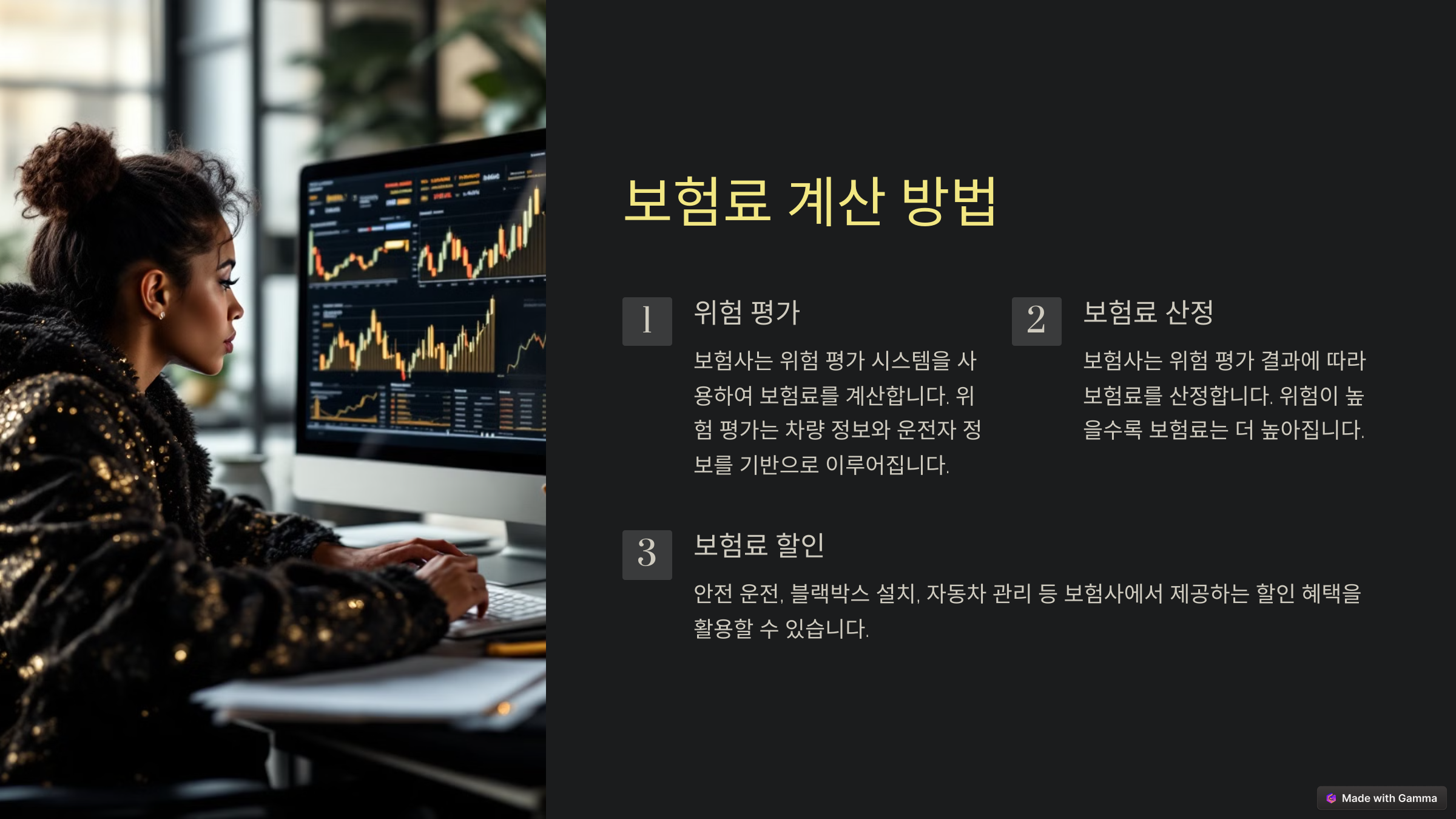 자동차 보험료는 다양한 요소를 바탕으로 계산돼요. 보통 보험사는 기본 보험료에 개인별 위험 요소를 더하거나 할인 요소를 적용해 최종 금액을 산출해요. 기본적으로 차량의 가격, 차종, 연식 등이 반영된 후, 운전자 정보와 사고 이력 등이 추가로 고려된답니다.