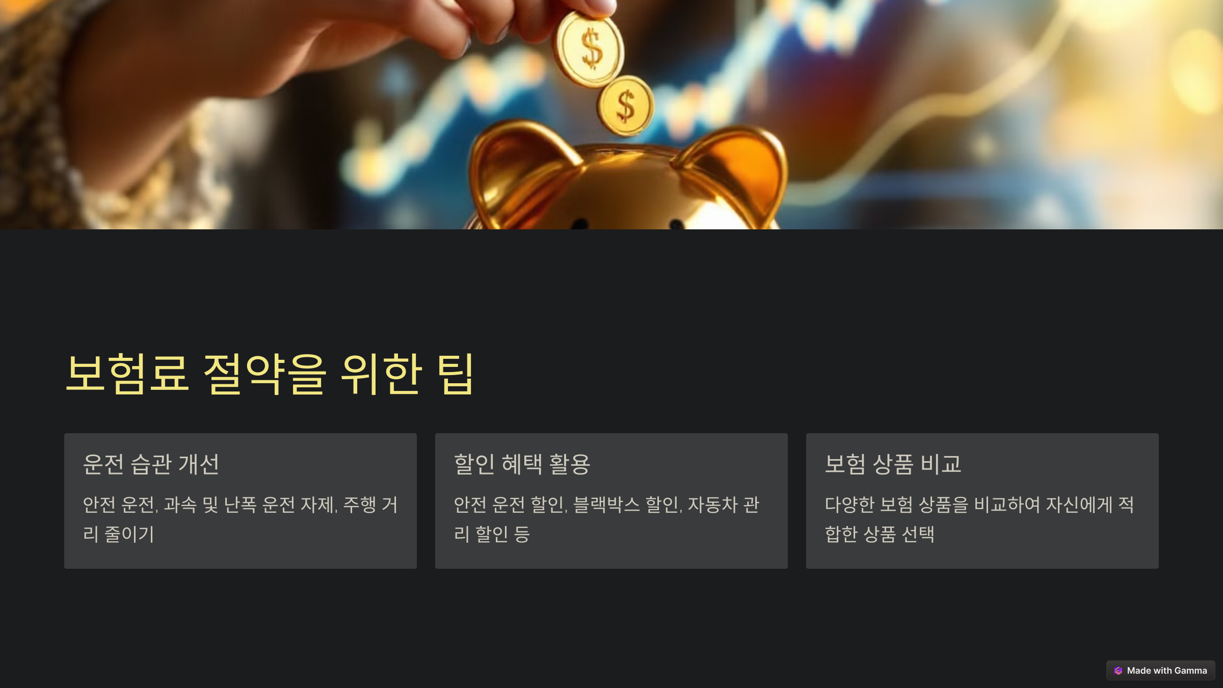 자동차 보험료를 절약하려면 몇 가지 간단한 팁을 활용해 보세요. 가장 기본적인 방법은 보험사마다 제공하는 할인 혜택을 꼼꼼히 비교하는 거예요. 보험사마다 다르게 적용되는 할인율과 조건을 확인하면 더 경제적인 선택을 할 수 있답니다.
