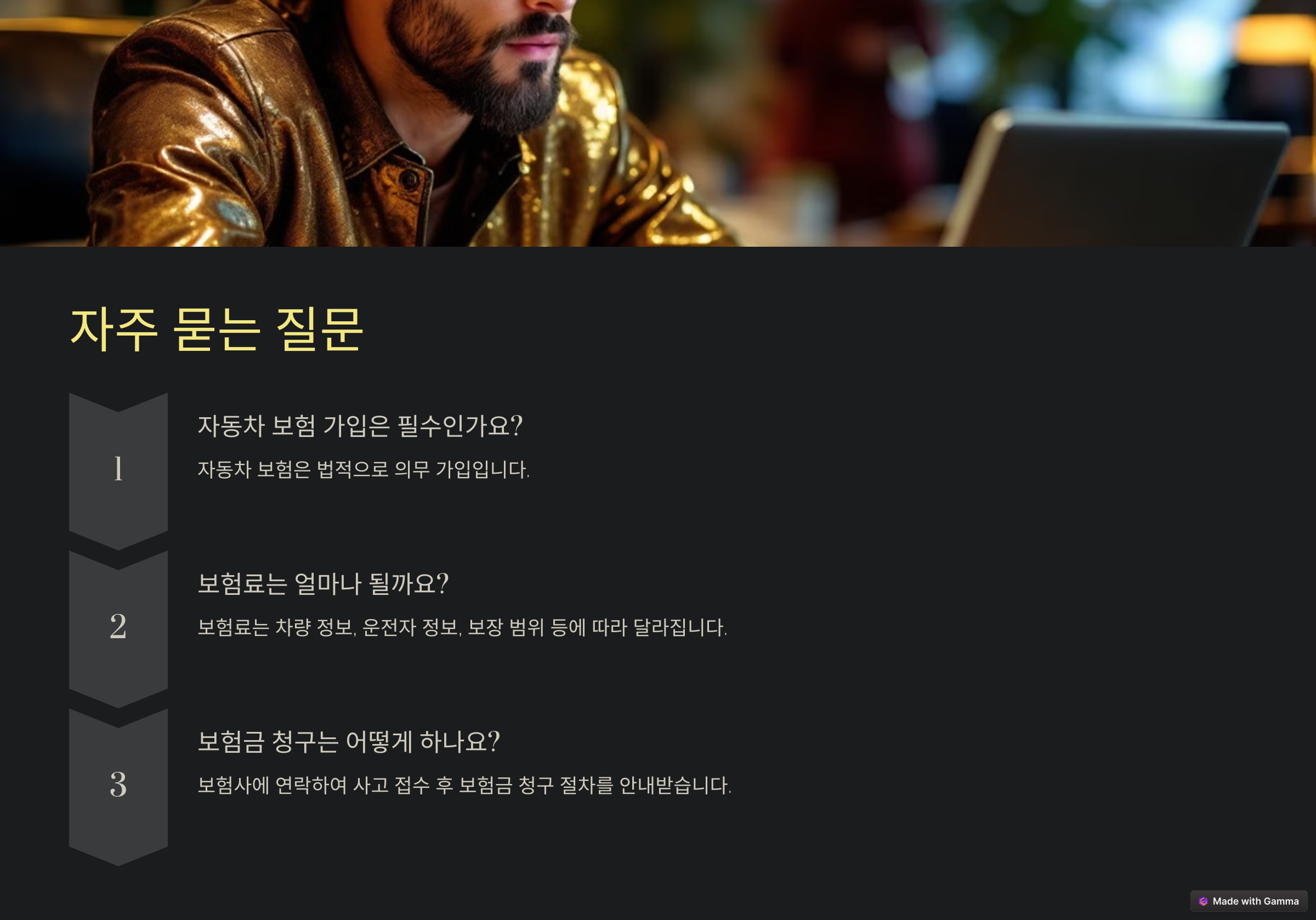 마지막으로, 여러 보험사를 비교하고 통합 상품을 선택하는 것도 고려해 보세요. 같은 보험사에서 자동차 보험뿐 아니라 다른 보험(예: 생명 보험, 주택 보험 등)을 함께 가입하면 추가 할인을 받을 수 있는 경우도 많답니다.