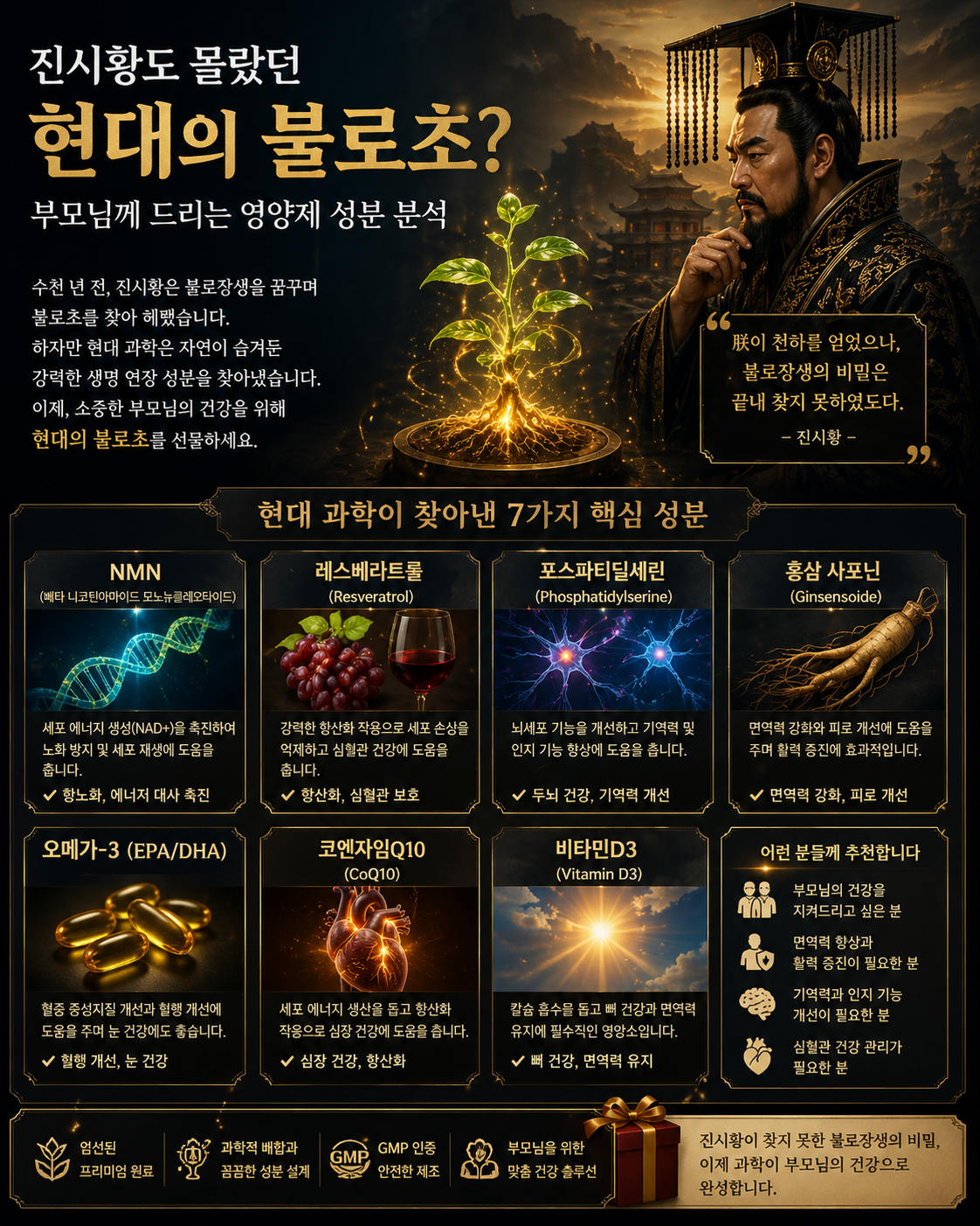 진시황도 몰랐던 현대의 불로초? 부모님께 드리는 영양제 성분 분석