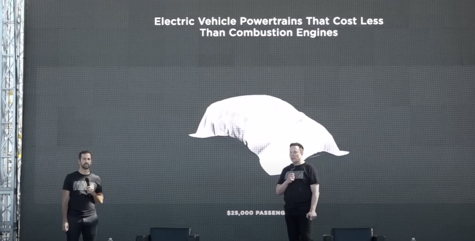 이렇듯 LEP배터리 라인업의 두 종류의 차량을 선보인 중에 하나는 지금의 테슬라 모델3 후륜 구동 LFP 모델을 의미하고 바로 옆 베일에 사인한 차량을 2만 5000달러에 출시될 엔트리크 모델이 될 거라고 이야기했습니다. 온라인에서는 모델3 보다 엔트리급 라인업인이 모델2 라고 많이들 불렀지만, 일론 머스크가 모델3가 원래 모델2가 됐어야 했는데 포드 때문에 모델 쓰리가 된 것이니 모델2라고 부르지 말라고 선을 그었고, 대신 보급형 테슬라로 불리고 있습니다. 공식적으로 테슬라에서 이야기한 것은 일런 머스크의 몇 마디뿐이었지만 누군가 이걸 예상 스케치하고 상상을 듬뿍 넣은 렌더링들이 기하급수적으로 퍼지면서 올해 말에 출시될 거다! 아니다! 또는 내년에 출시될 거다? 라는 말들이 무성했는데요, 그리고 중국에서 만든다더라 차이나 오리지널로 중국 아레니스터에서 디자인까지 다 할 거라는 이래도 되나 싶을 정도로 말은 끝이 없었습니다.