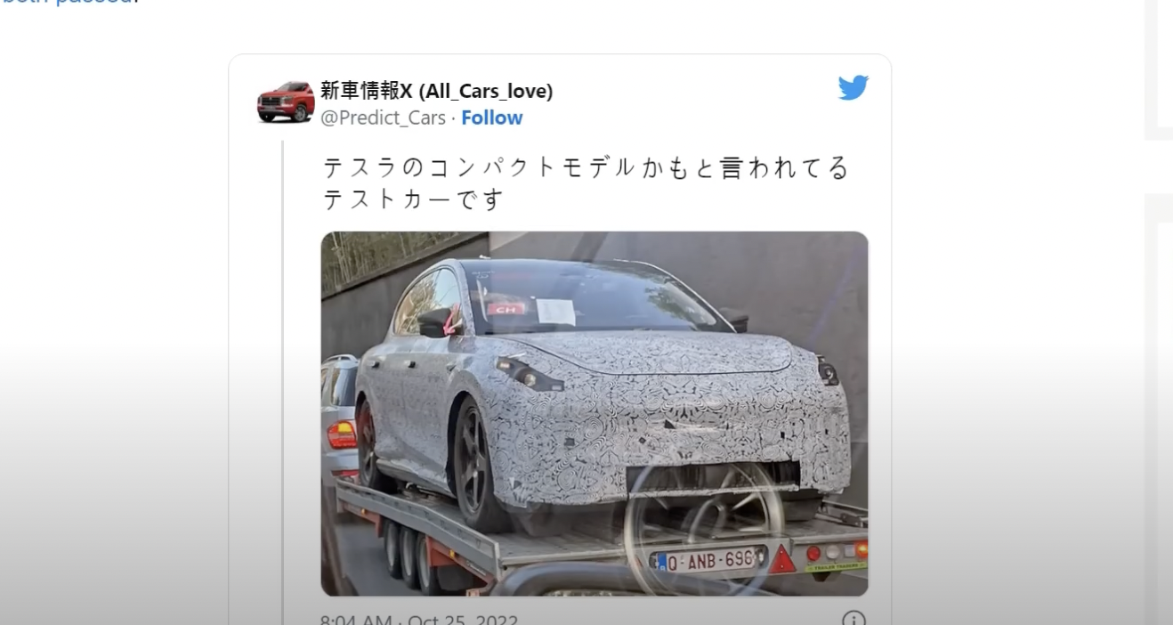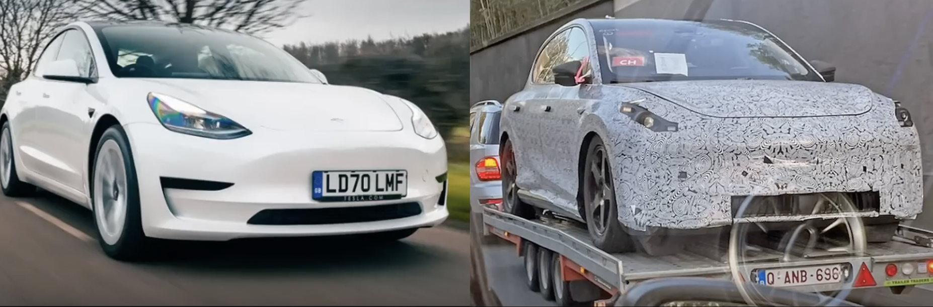 모델 S, X, 3, Y, 사이버 트럭 샘마일을 개발하면서 배운 모든 것을 차세대(반값 테슬라) 플랫폼에 적용할 것이다. 보급형 테슬라의 목표는 지금껏 테슬라 전 라이너 판매량보다 더 많이 생산하는 것이다." 라고 이야기한바가 있습니다. 솔직히 그동안 일론 머스크의 현얼림에 많이 당하긴 했지만, 반값 테슬라에 대해서 이번만큼 매우 구체화되고 그럴싸한 이야기를 한 것은 처음으로보는데요, 다시 기대감이 불타 흘렀고 그 와중에 초반에 보여들었던 스파이 샷이 포착된 것입니다. 이 사진이 반값 테슬라(모델2)다는 것은 아무도 확신할 수 없습니다. 다만 테슬라 차량임에는 논란의 여지 없이 분명합니다. 그러면 여기서 우리가 모델3와 뭐가 다른지 하나씩 꼬집어 보면 모델3의 페이스 리프드 버전인지 아니면 정말 새로운 차량인지 알 수 있지 않을까? 하는 생각에 최대한 비슷한 각도의 모델3 차량을 찾아내서 비교해 보면,