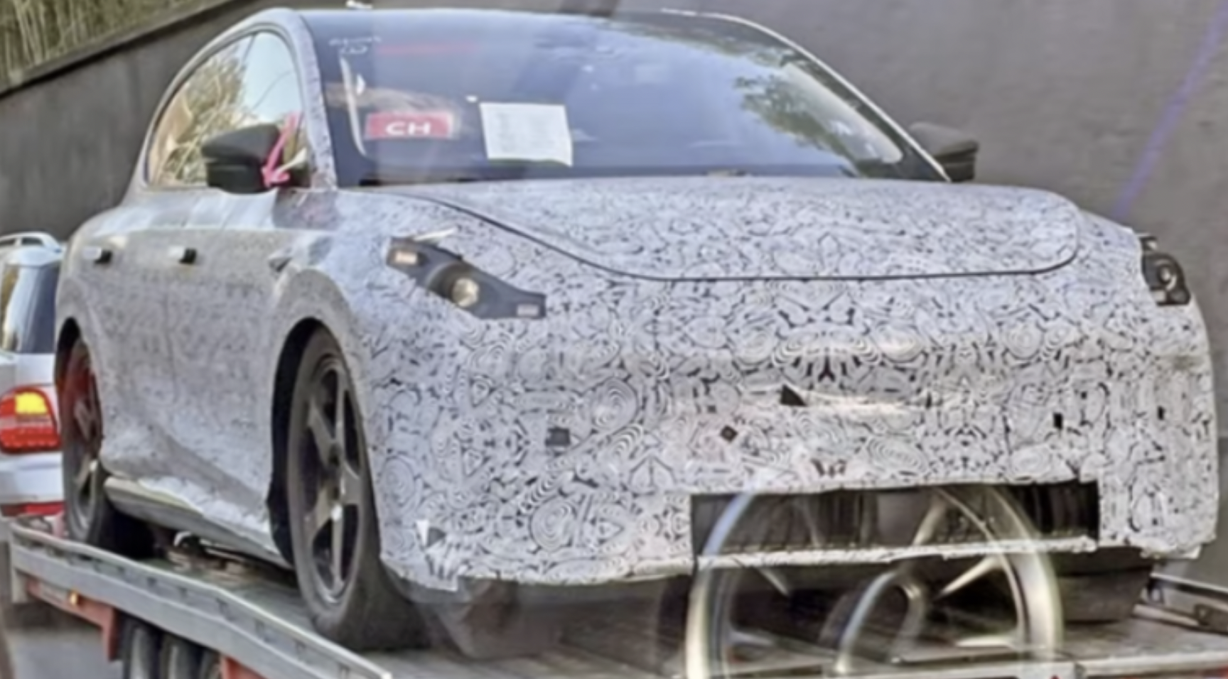우선 전면부터 보시면, 가장 눈에 띄는 것이 범퍼 라인입니다. 로고를 기준으로 수평으로 가다가 안개등 쪽으로 떨어지는 형태의 라인이 모델 쓰리 의 시그니처 라인인데 위장막 테슬라는 마치 포르쉐 파나메라가 연상되듯이 헤드라이트 중간 부분까지 일자로 두툼하게 쭉 이어집니다. 그리고 번호판이 있는 곳이 약간 음곽으로 들어갔다가 안개등 라인 밑으로 다시 라인 하나가 더 들어간 모델3에 비해 위장막은 평평한 모습입니다. 그리고 ㄱ역자 모형으로 좌우로 들어갔던 안개등의 라인은 위장막에서는 전혀 느낄 수 없고 오히려 안개등 위치와 비슷한 곳에 센서가 있어 가리지 않게 네모 모양으로 뚫어나온 것을 알 수 있습니다. 하단 흡입구도 모델 쓰리보다 좀 더 커 보입니다. 위장막 차량이라도 안전을 위해서 턴 시그널, 즉 깜빡이 부분을 자르는 경우가 많은데요. 헤드램프를 보면 LED로 추정되는 부분이 라이트 하단과 상단에 있어 이 둘 중 하나는 깜빡이가 아닐까 추측되어집니다. 전면만큼 큰 차이를 보이는 것이 측면인데요. 가장 눈에 들어오는 것이 도어 핸들입니다. 모델3의 아이덴티인 히든도어 핸들이 사라지고 현대자동차는 넥소나 지구공에서 볼 수 있는 팝업도 핸들이 보입니다. 그리고 기존 모델3는 도어 핸들 기준으로 횡다 위쪽으로 한 줄 아래쪽으로 한 줄 그리고 도 하단에 수평적으로 한 줄로 총 세 가지 라인이 있는데, 위장막 차량은 도어 핸들 위로 헤드라이트부터 뒤팬다까지 강렬하게 지나가는 케이터 라인과 도어 하단의 뒤로 갈수록 상승하는 라인이 인상적입니다. 특히 뒤팬다 라인을 자세히 보시면, 모델3는 뾰족하게 각을 지어 떨어진 느낌이라면 위장막 촬영은 동글동글한 볼륨감이 돋보입니다. 사진상으로 명확하진 않지만 테슬라의 기존 두툼한 비필러도 잘 보이지 않고 씨 필러 역시 끝 부분에서 더 동그라게 떨어지면서 트렁크가 길게 뻗은 세단의 느낌이 더 강하게 듭니다.
