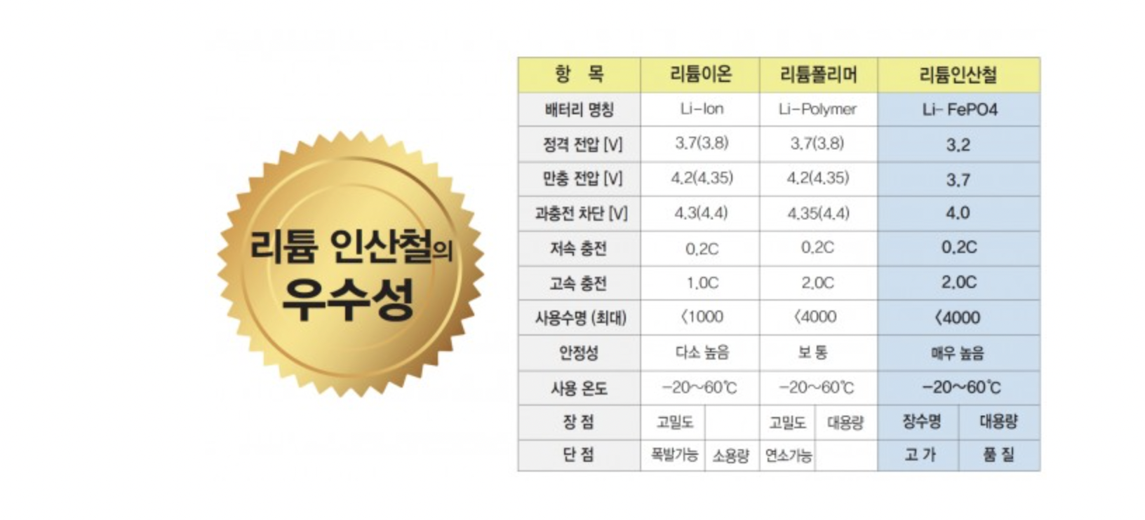 여기서 LEP 배터리라고 함은 리튬인산철 (Li- FePO4)라고 하는데 이 배터리의 특성은 에너지를 저장했다가 반복적으로 사용 할 수 있는 전기를 담을 수 있는 에너지 용기로 리튬 계열의 배터리를 사용하고 있고 리튬 계열 배터리는 리튬 이온, 리튬 인산철, 리튬 폴리머 세 종류가 있으며 이를 통칭하여 리튬 2차전지라고 합니다. LEP배터리는 다른 리튬이온전지 등과 비교시 발열성이 없어, 가연성 또는 폭발 등을 일으키지 않음으로써 안전성이 탁월합니다. 또한 직류 측 입력 변동이 작아서 PCS 설계가 용이하고 ESS 절연전압도 낮출 수 있는 효과가 있으며 온도특성이 매우 좋아 자체 발열이 거의 없어서 주위 온도에 영향을 주지 않는데 장점으로 두고있습니다.